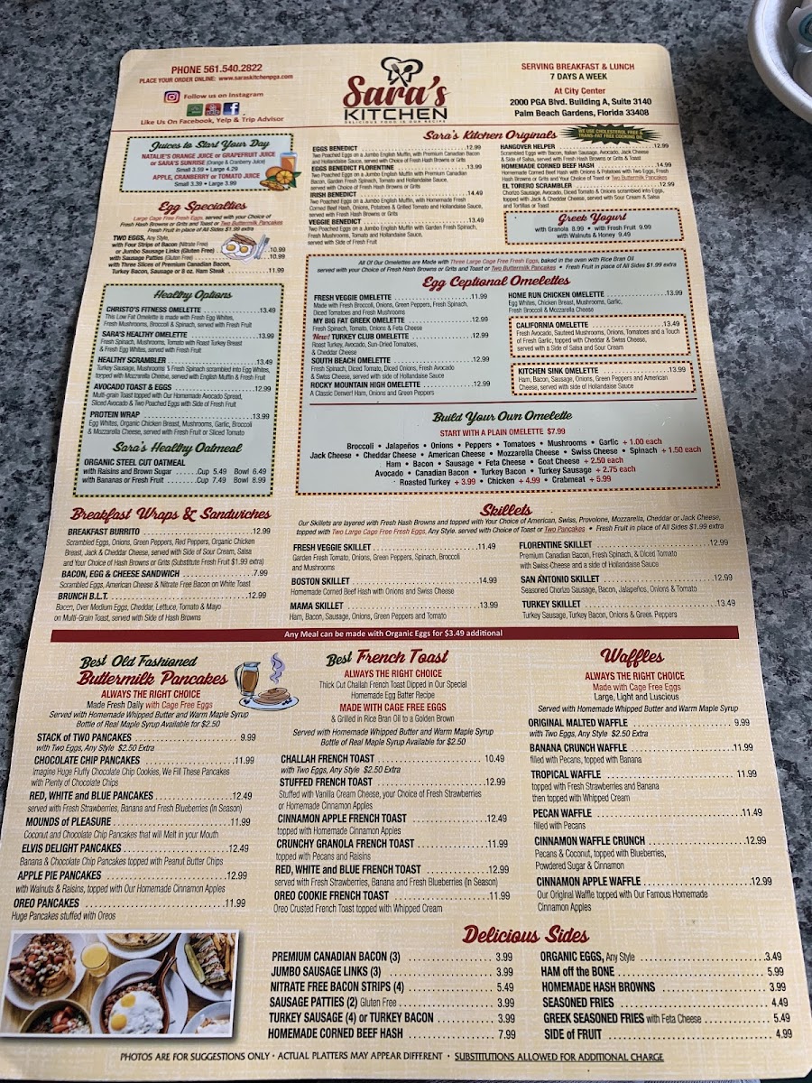 In conclusion, Sara's Kitchen is a delightful stop for anyone in the Palm Beach Gardens area. Whether you're in the mood for a hearty breakfast, a leisurely lunch, or a cozy brunch with friends, this kitchen has you covered. Come for the food, stay for the experience, and leave feeling nourished in every sense.